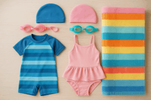 レッスン時間の10分〜5分までにプール入館し、更衣室でお着替えしましょう
